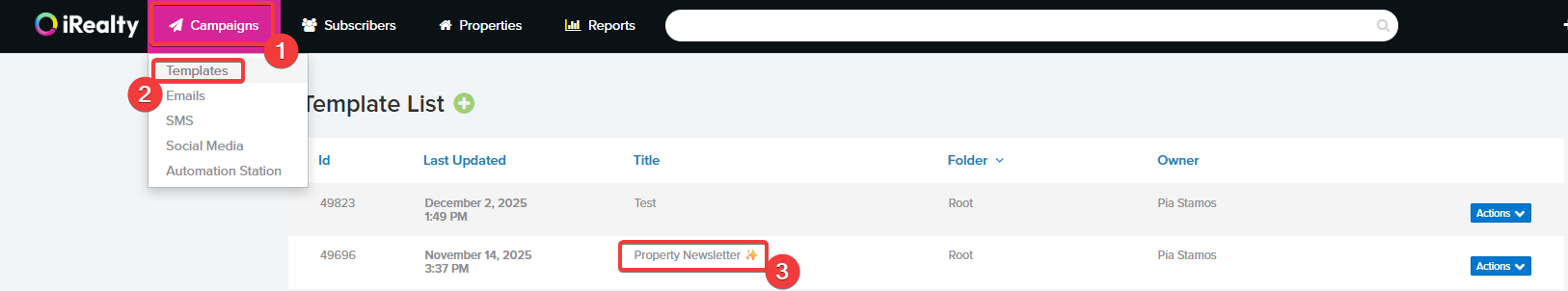 - Go to Campaigns and then Templates.