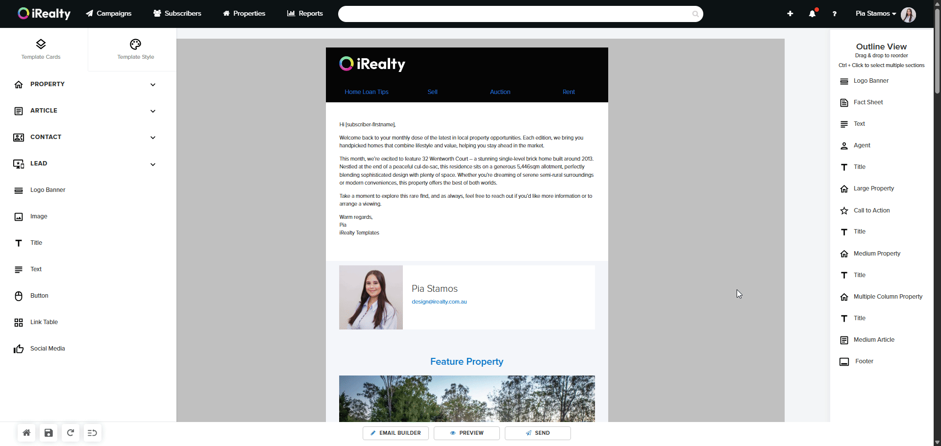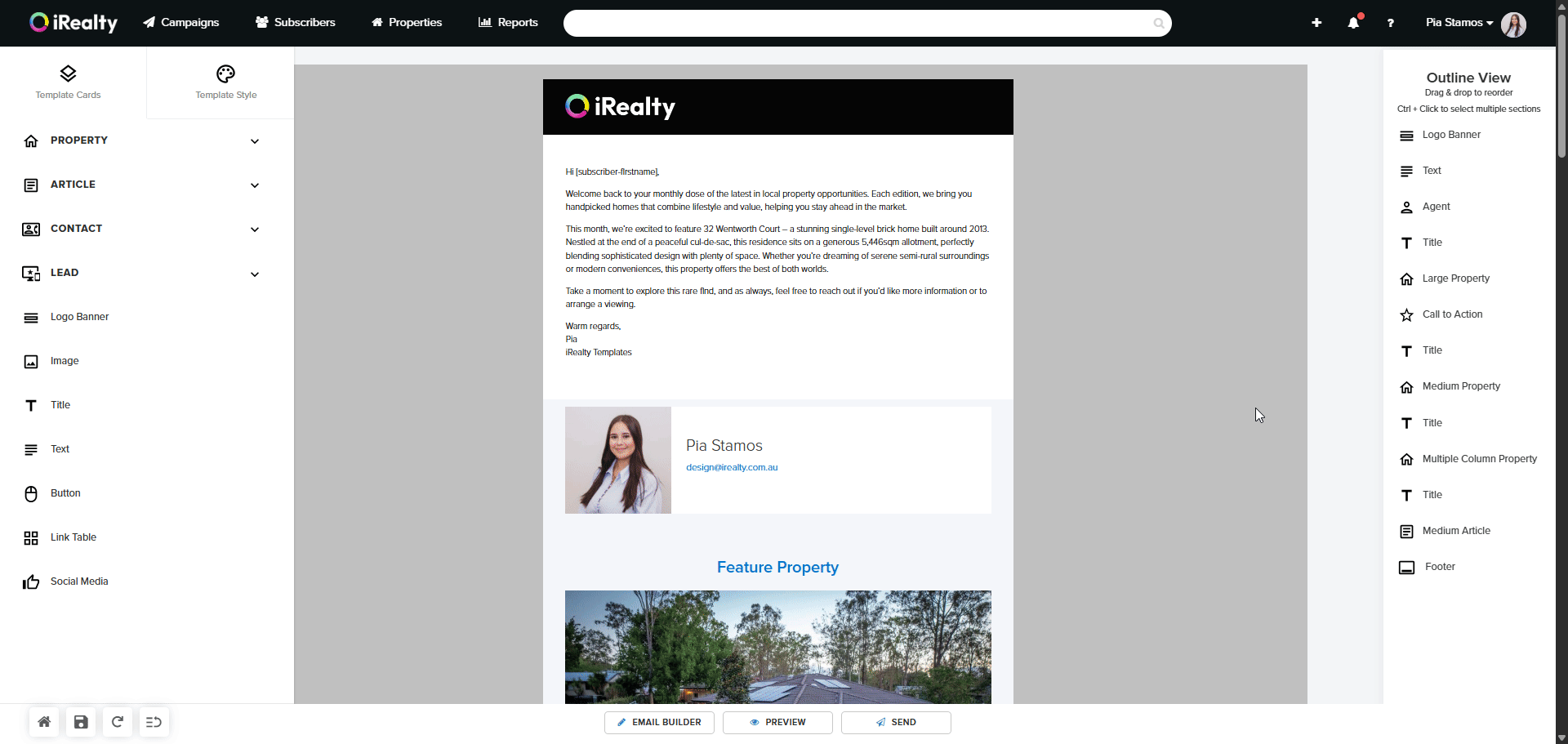 - Click Preview in the email builder.