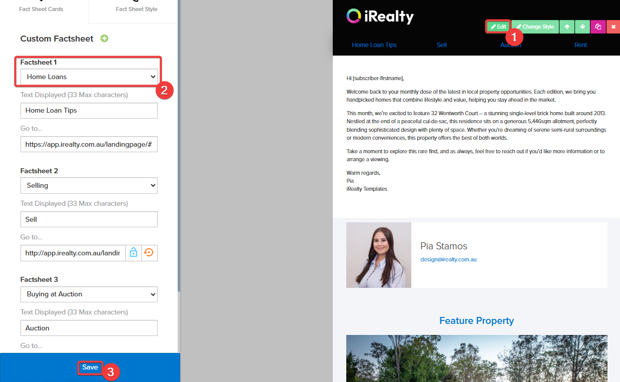The available fact sheets in your email will update once you click Save.