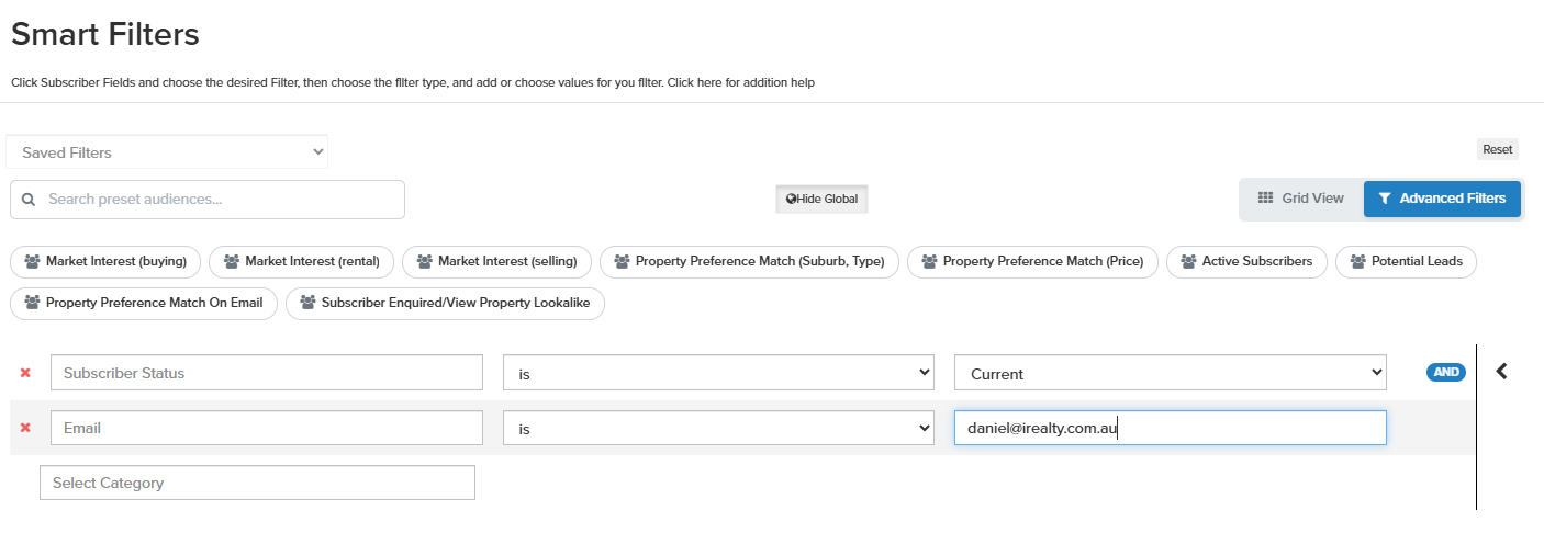 Email is to the subscriber’s email address (for example, daniel@irealty.com.au)