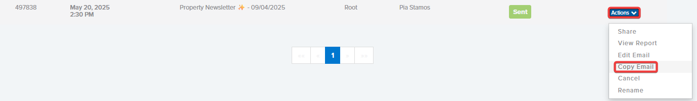 - Select Actions and then Copy Email.