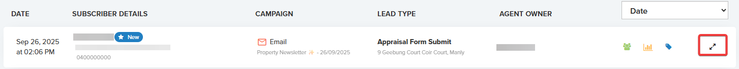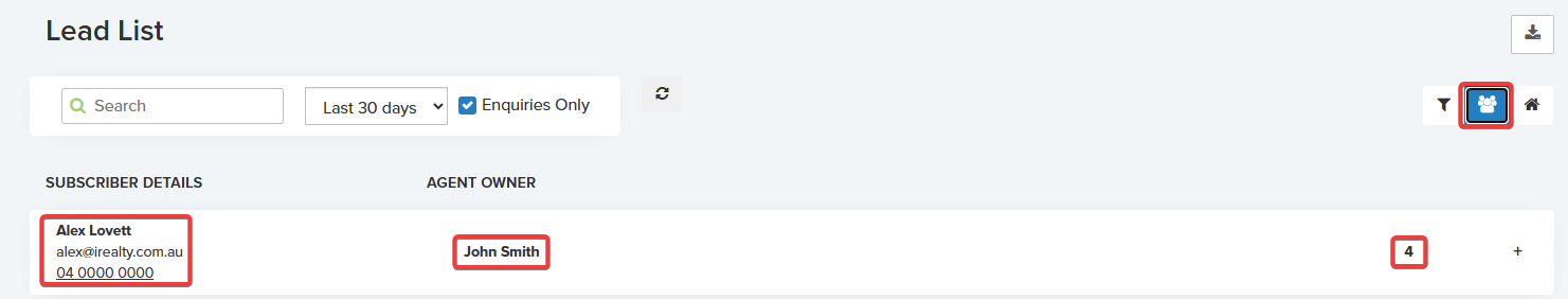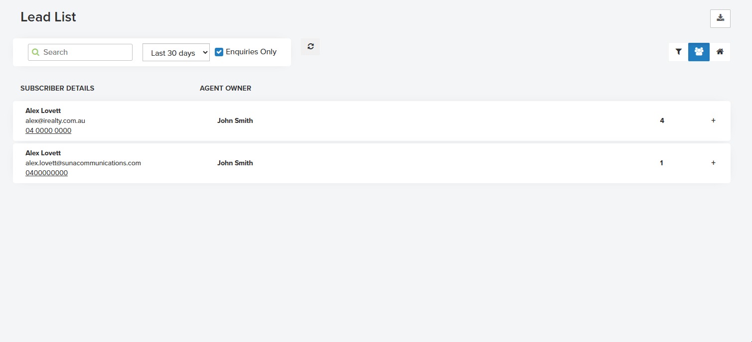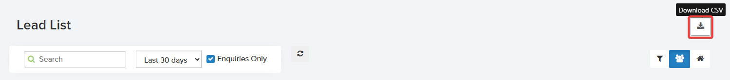 Selecting this icon opens your Lead List, showing inquiries generated from your most recent campaign.