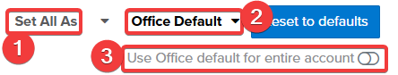 When enabled, the Office Default settings will apply across the entire account. - Reset to Defaults