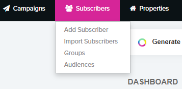 - Import subscribers - Allows you to add in a group of subscribers through a CSV file.