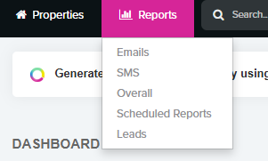 - Overall - Shows you all the reports available from the Emails, SMS, and other leads.