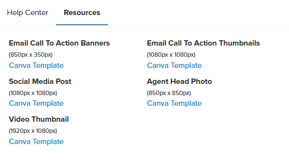 The is also a handy resource tab that will provide you with the templates for images that are used inside the app and can help you make the best pictures to use in your emails.