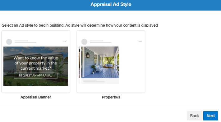 - Create Appraisal Ad - This option opens the Social Media Builder and automatically prepares it for creating an appraisal advertisement.