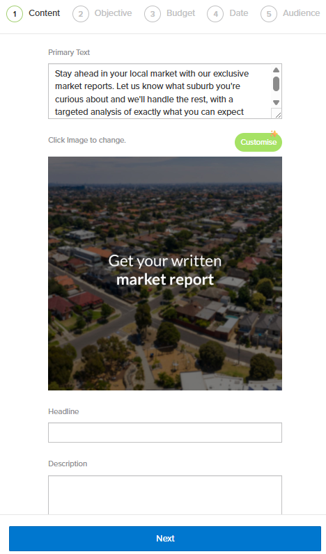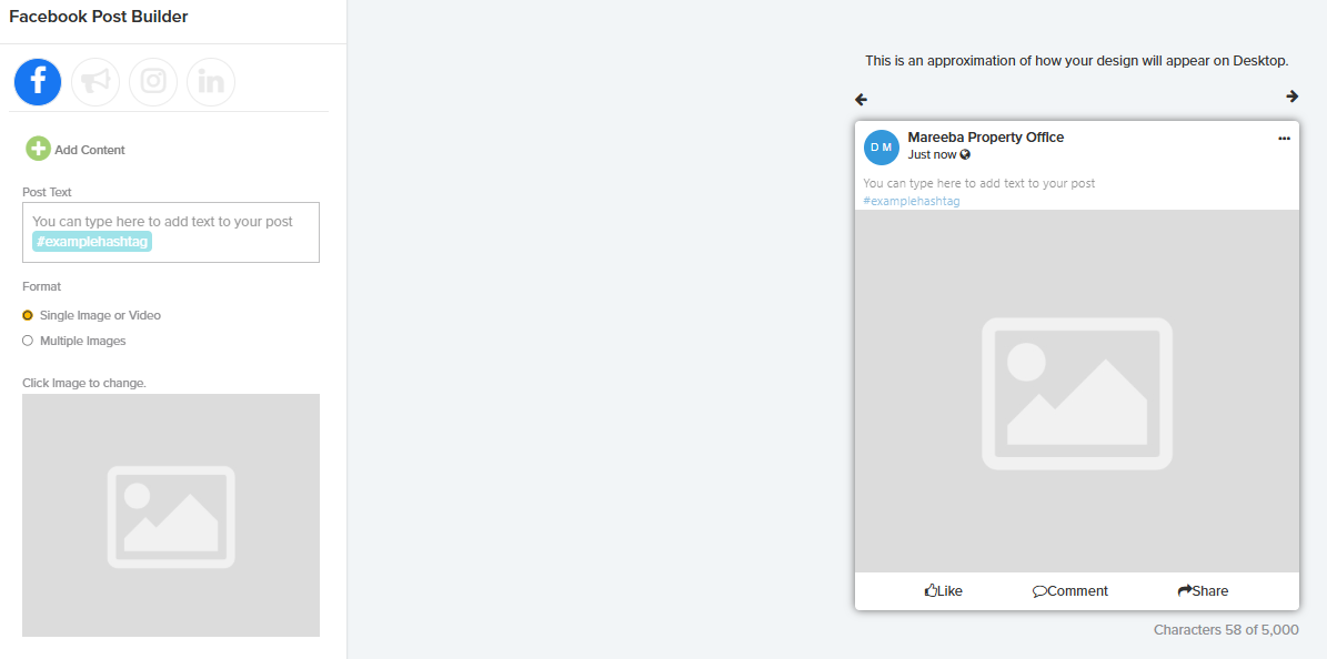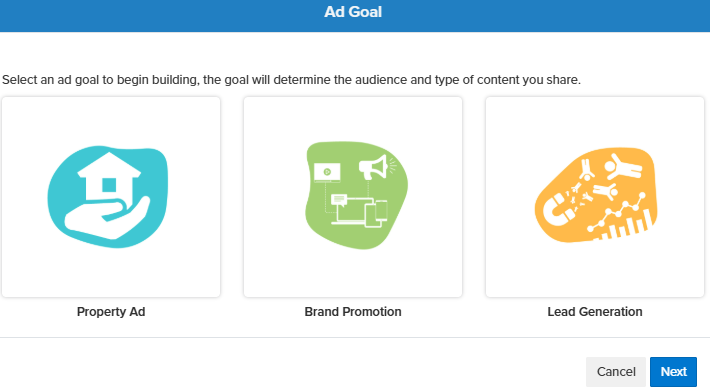 - Create a Property Ad - This option opens the Social Media Builder and automatically prepares it for creating a property advertisement.