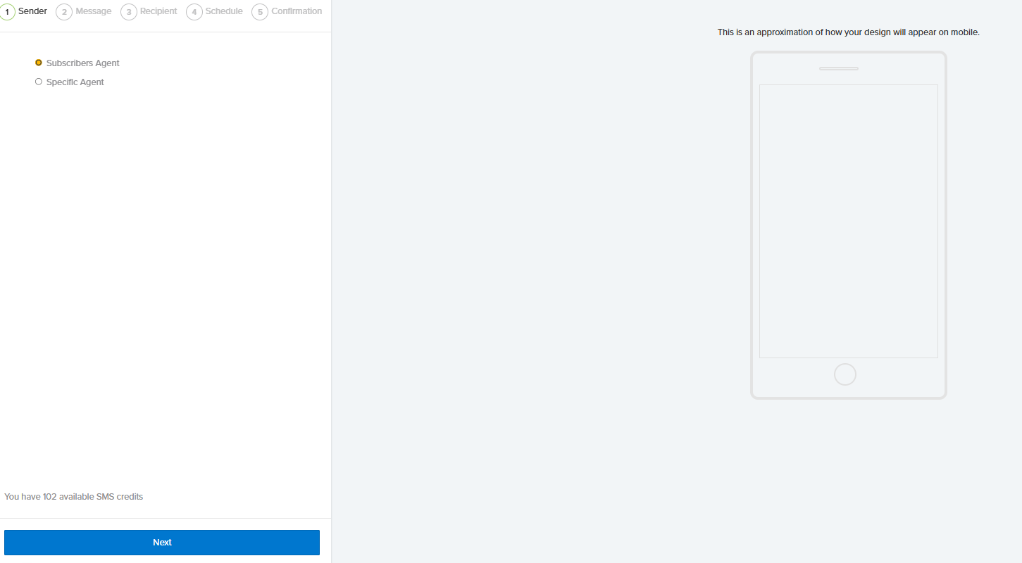 - Create SMS - This option takes you to the Create SMS page, where you can begin creating your SMS message.