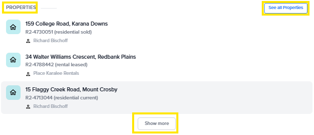 If the property you’re looking for does not appear, selecting See all properties will take you to the Properties page, where you can view all current listings.