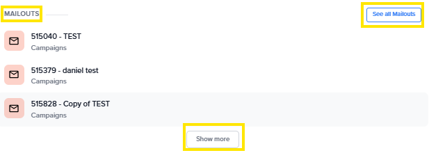 If the email or mailout you’re looking for does not appear, selecting See all emails will take you to the Emails page, where you can view all available emails and mailouts.